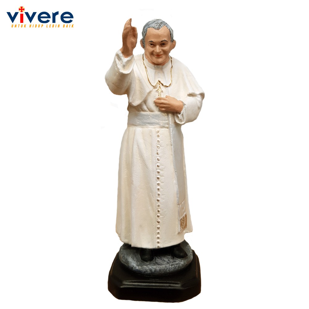 Paus Yohannes Paulus II lahir di Wadowice, sebuah kota kecil di Polandia, pada 18 Mei 1920 dengan nama Karol Jozef Wojtyla.Ketika Perang Dunia II, ia belajar di seminari rahasia yang dikelola Uskup Krakow karena ingin menjadi pastur. Wojtyla merampungkan seminarinya setelah Perang Dunia II usai dan ditahbiskan pada 1946.Pada 1967, Wojtyla diangkat menjadi kardinal oleh Paus Paulus VI. Ia menjabat sebagai kardinal sampai akhirnya terpilih sebagai Paus dengan nama Yohanes Paulus II pada 1978.Paus Yohanes Paulus II dikenal sebagai seorang konservatif. Selama kepemimpinannya, ia gencar menyatakan penentangan terhadap hal-hal yang dianggap tak sesuai dengan ajaran agama, termasuk aborsi, alat kontrasepsi, hubungan sesama jenis, hingga ajaran komunisme.Paus Yohanes Paulus II merupakan salah satu sosok yang dianggap punya pengaruh kuat dan berperan dalam keruntuhan komunisme di sejumlah negara, termasuk di negara asalnya, Polandia.Selama menjadi pemimpin tertinggi umat Katolik dunia, Paus Yohanes Paulus II pernah mengunjungi 129 negara. Indonesia salah satunya.Paus Yohanes Paulus II berkunjung ke Indonesia pada 1989. Dia sempat berhotbah di Stadion Gelora Bung Karno, yang waktu itu bernama Stadion Utama Senayan, yaitu pada 9 Oktober 1989.Sabtu 2 April 2005, Paus Yohannes Paulus II meninggal dunia, 46 hari sebelum ulang tahunnya yang ke-85.Sepuluh tahun kemudian, tepatnya Minggu, 27 April 2014, Paus Yohannes Paulus II dianugerahi orang suci sebagai santo.SPESIFIKASI PRODUK:Tinggi: 12,5 cmPanjang: 4,5 cmLebar: 5,5 cmBahan: resin/fiber-------------------------------------------------------------------------------------------Vivere Toko Rohani menerima pesanan untuk komuni pertama, souvenir misa arwah dan lain-lain. Reseller welcome!#pausyohannespaulus #paus #vivere #tokor