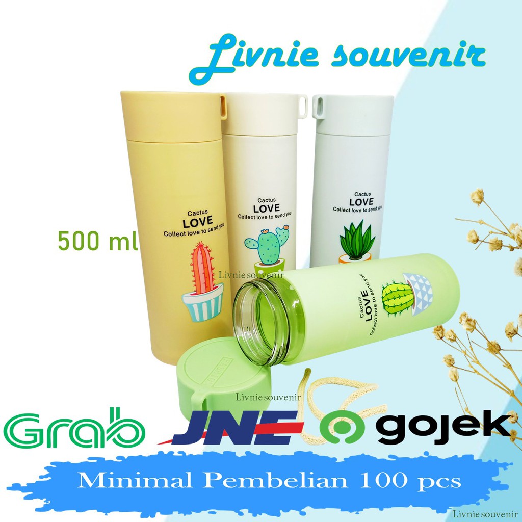 Selamat Datang Di Livnie Souvenir Store ❤️Souvenir Termos kaca kaktus 400 ml❤️"UNUTK PEMESANAN SABLON MINIMAL PEMESANAN 100 PCS, HARGA BERBEDA UNTUK PESAN KURANG DARI 100, ADA LINK BERBEDA UNUTK PEMESANAN KURANG DARI 100"Keterangan :✏️>> Kapasitas 400 ml>> Tinggi 19 cm, Lebar 6 cm>> Bahan Bagian luar dari rubber / plastik yang berkualitas>> Bahan Bagian dalam terbuat dari kaca beling>> Terdapat seal karet untuk menjaga air agar tidak tumpah>> Warna bervariasi>> Bisa Cetak Nama / Gambar Sesuai keinginan anda,>> Untun Cetak Sablon Pengerjaan -+ 2 Mingguan ( Pre Order)Kemasan : 1. Bisa beli barangnya aja 2. Bisa beli barang + sablon 3. Pakai kemasan plastik,tali dan pita 4. Pakai kemasan kain tile 5. Pakai kemasan mika polos dan pita 6. Pakai kemasan mika motif 7. Pakai kemasan bok motif silver 8. Pakai kemasan box motif emas 9. Pakai kemasan kain Blacu*Untuk info lebih lanjut hubungi admin.❗❗ INFO PENTING & SARAN ❗❗ >> Mohon menambahkan packing tambahan Bubble dan Kardus.>> Dan jika diperlukan mohon menambahkan packing kayu/ dipalet. >> Khusus Luar kota wajib di palet ya. Mohon Maaf Kerusakan Dalam pengiriman Bukan tanggung jawab Kami,Fast Delivery, Pesanan Yang Masuk Sebelum Jam 14.00 Wib Akan Dikirim Di Hari Yang Sama Kecepatan Pengiriman Barang Tergantung EkspedisiKhusus COD ada beberapa wilayah tidak terjangkauPengiriman barang dari JAKARTA⛔ PERATURAN TOKO ⛔ Mohon Melakukan Video Unboxing Saat ️Paket Diterima Jika ada kekurangan barang ,harap foto Label pengiriman dan Melampirkan video unboxingTIDAK Menerima Sisipan WARNA dan VARIASI di ️ CATATAN / VIA CHATCek dahulu sebelum Checkout kami tidak terima Ganti Nama, Nomor, Alamat, atau Barang setelah Checkout ⛔❤️Terima kasih Selamat Berbelanja di Livnie Souvenir. Bagikan link toko kami https://shopee.co.id/livnie_souvenir kepada teman-teman Anda dan❤️ favoritkan Toko kami untuk terus update mengenai stok dan produk terbaru.❤️. Terima kasih & Happy shopping Jangan Lupa Bintang 5 ⭐⭐⭐