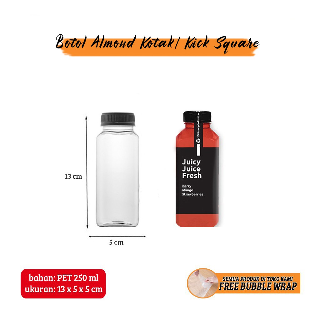 Botol PET Almond Kotak 250 ml (1 pcs)Bahan: PETTinggi: 13 cmP x L : 5 x 5 cmbotol untuk minuman, kacang-kacangan, snack dll#botol #almondkotak #botolalmond #botolminumplast