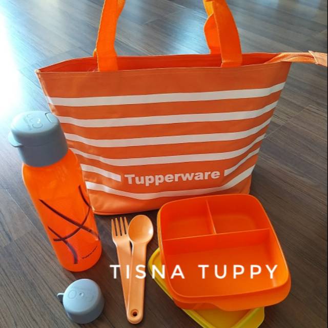 Distributor Perlengkapan di Kabupaten Situbondo Paket Tas Garis Lolly Tup Dan Eco 500ml Fancy Dan Sendok Garpu Oranye dari Toko Tisna Shop Kota Surabaya