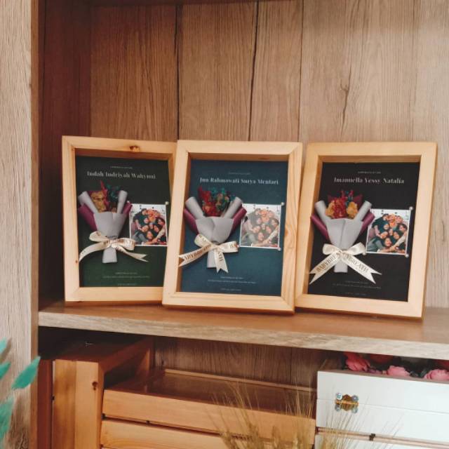 Sudah include :- Frame ukuran 15x20- Tanpa kaca- Box- Gift Card- Bubble wrapTambahan :* Request tulisan dituliskan di kolom catatan saat check out.* Pengiriman file foto mohon chat untuk lebih jelasnya.Ucapan:Nama:Wish/quotes:Tambahan/tanggal/pengirim:Gift card: (Bisa dikosongkan)# Klaim dalam bentuk kerusakan frame (karena kesalahan kami/bukan kesalahan kurir) akan kami proses dan terima apabila ada video unboxing. Jadi, mohon untuk take video ketika buka p