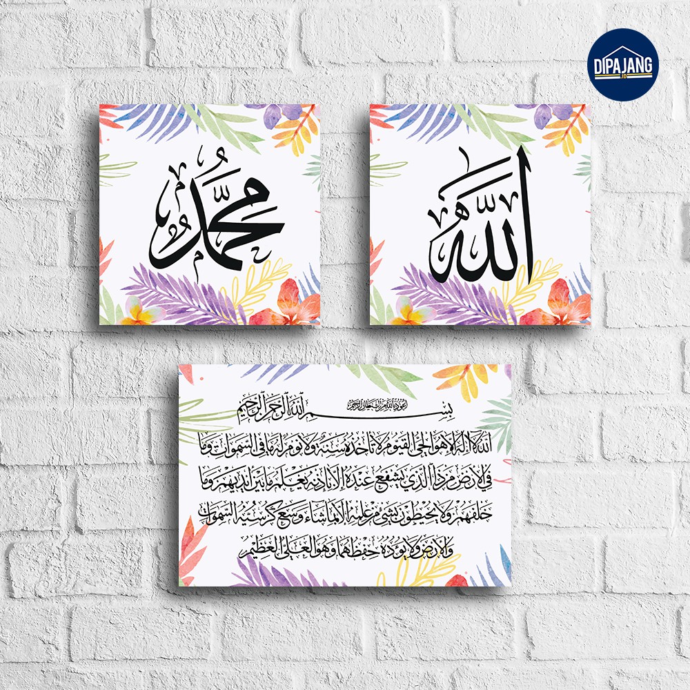 RINGKASAN DETAIL HIASAN DINDING WALL DECOR:- Papan mdf tebal 9 mm- Dua buah 20x20 cm (Allah Muhammad) dan 20x30 cm (Ayat Kursi)- High Print Quality + Laminasi Doff- Siap pasang sudah ada cantolan___________________KEUNGGULAN HIASAN DINDING WALL DECOR- Harga terjangkau- Awet- Desain menarik- Pemasangan mudah- Pengiriman 100% aman menggunakan busa + bubblewrap- Lebih tebal dari toko lain sehingga aman dari tiupan angin___________________HIASAN DINDING INI COCOK UNTUK- Ruang tamu- Ruang keluarga- Kamar- Kantor- KelasYuk upgrade dekorasi tempat tinggalmu dengan Hiasan Dinding Wall Decor ini. Dengan memasang hiasan dinding wall decor ini akan menambah estetika dengan nuansa islami.Kami masih menggunakan bubble warp untuk membungkus produk yang kami kirimkan ke Anda. Yang sebelumnya, produk sudah kami lilit terlebih dahulu dengan busa. Pembungkus berlapis ini digunakan agar produk tetap terjaga kualitasnya hingga ke tangan Anda.Hiasan dinding wall decor menggunakan High Print Quality. Tidak hanya itu kami juga menambahkan laminasi doff yang menambah awet hiasan dinding dan semakin tampil elegan.Bahan baku utama adalah MDF ketebalan 9 mm yang memliki karakter halus di dua permukaan. MDF sudah lama menjadi idaman di dunia furnitur. Dengan perawatan tepat, hiasan dinding ini awet bertahun-tahun.Pemasangannya pun mudah. Anda tinggal memaku di sudut ruangan yang diinginkan. Kemudian Anda tinggal memasang hiasan dinding wall decor. Produk hiasan dinding wall decor sudah ada pengait atau cantolannnya.Sudah ratusan produk dari kami yang menghiasi rumah-rumah pelanggan.Happy Decorating! Untuk order hiasan dinding wall decor ini silahkan klik tombol Beli Sek