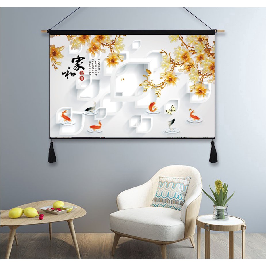 Name: Lukisan Bunga Ikan Koi Nuansa China Fengshui Kelimpahan Rejeki Hoki [kode:c34]